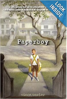 I loved this book - the setting, the time period, but especially the eleven year old boy who is willing to put himself out there, forcing himself to talk to strangers who might not understand his speech impediment and think him unintelligent. When I realized this book is loosely autobiographical, I enjoyed it that much more. Vince Vawter's Paperboy is a touching, heartwarming story that I am passing on to my daughter and will be ordering for my school library.