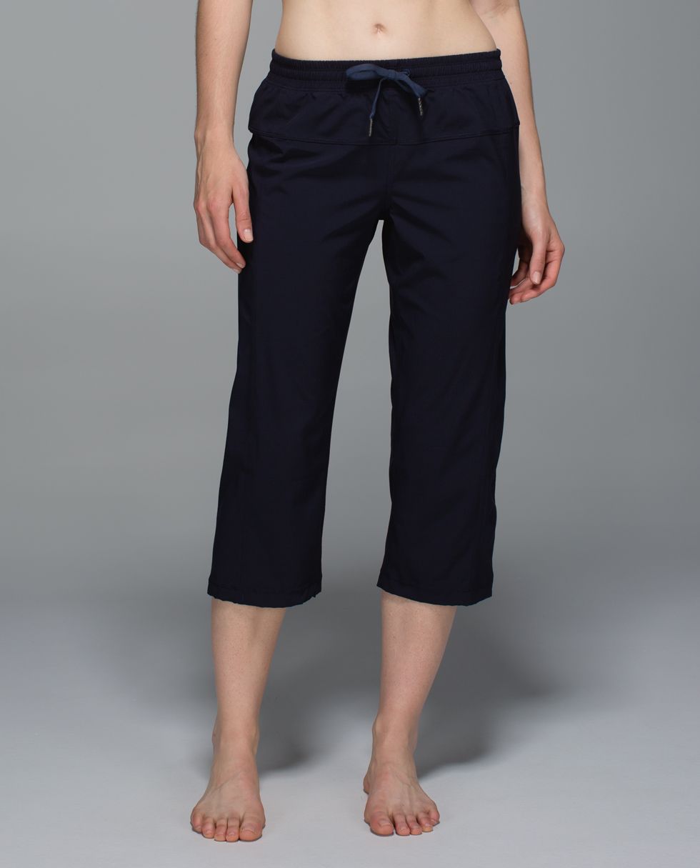 I haven't been to Jordan Creek Mall in Des Moines for a while, so when the girls and I went to visit my sister this week I was excited to see a Lululemon store there. What nice exercise and casual clothes! I found a pair of crops on the clearance rack, but was eyeing these pants as well.